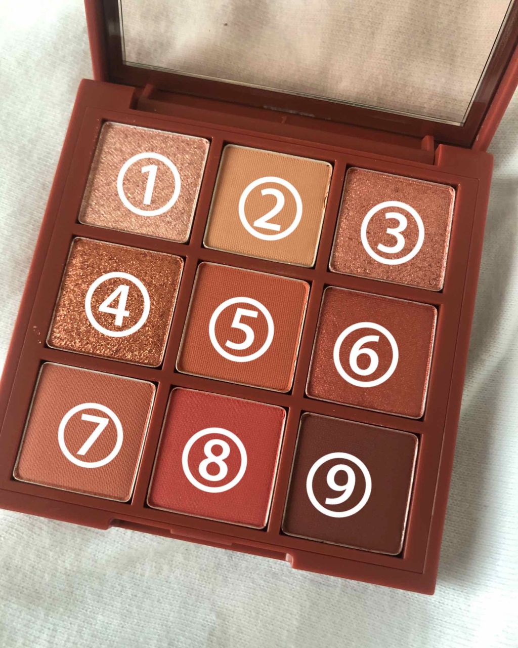 - ロマンチックに染まる、優雅な夕焼けEYE♡鮮やかに色づく紅葉のように、温かみのあるレッドブラウンカラーの9色アイシャドウパレット。
