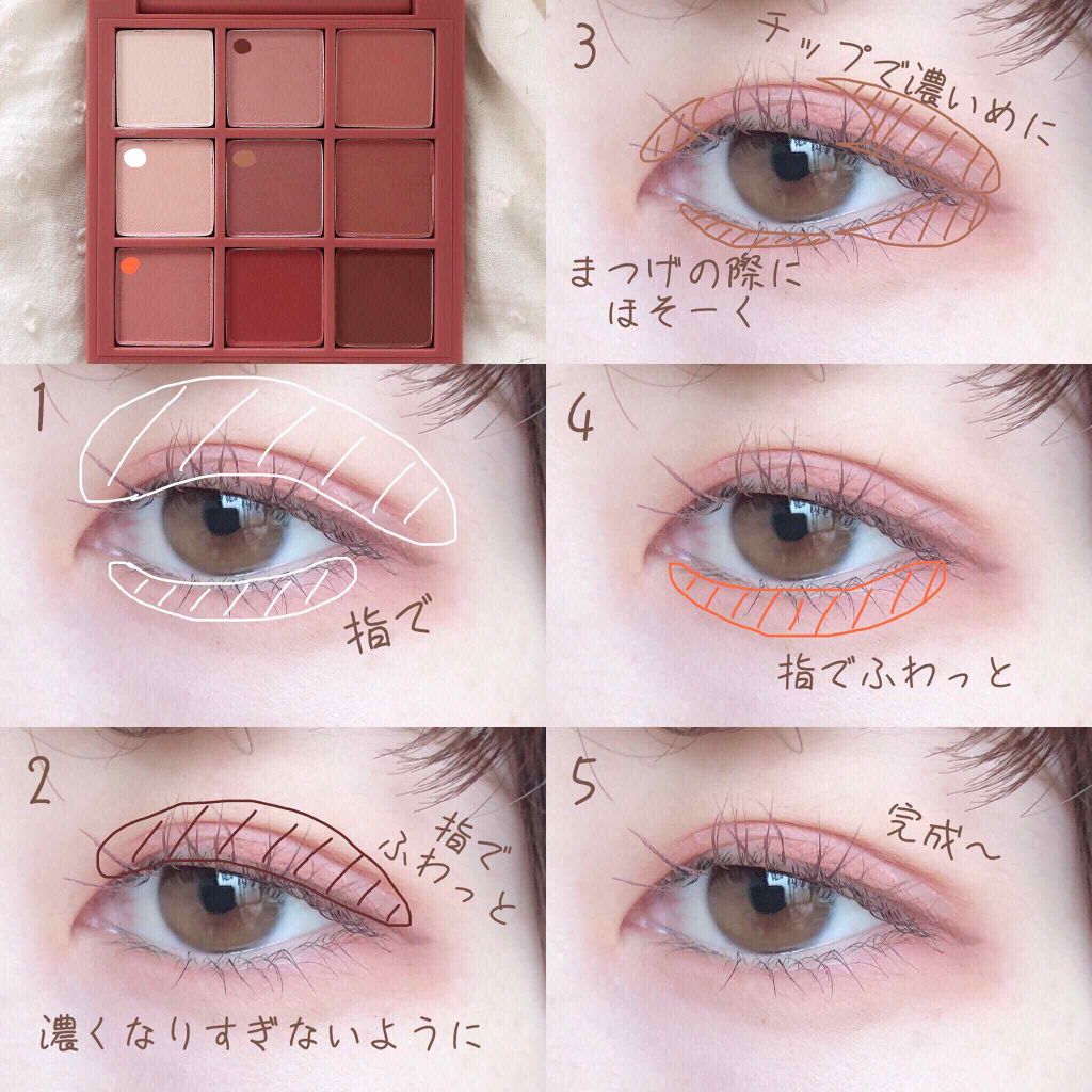 アイシャドウをグラデーションにするときに濃淡に気をつける。 アイラインはぶつっと途切れさせない! マスカラの色も重要で、ブラウンのマスカラを普段使っている方は少し赤みのあるブラウンマスカラを使ってみると、目元に自然な血色感がでてとってもおすすめです!