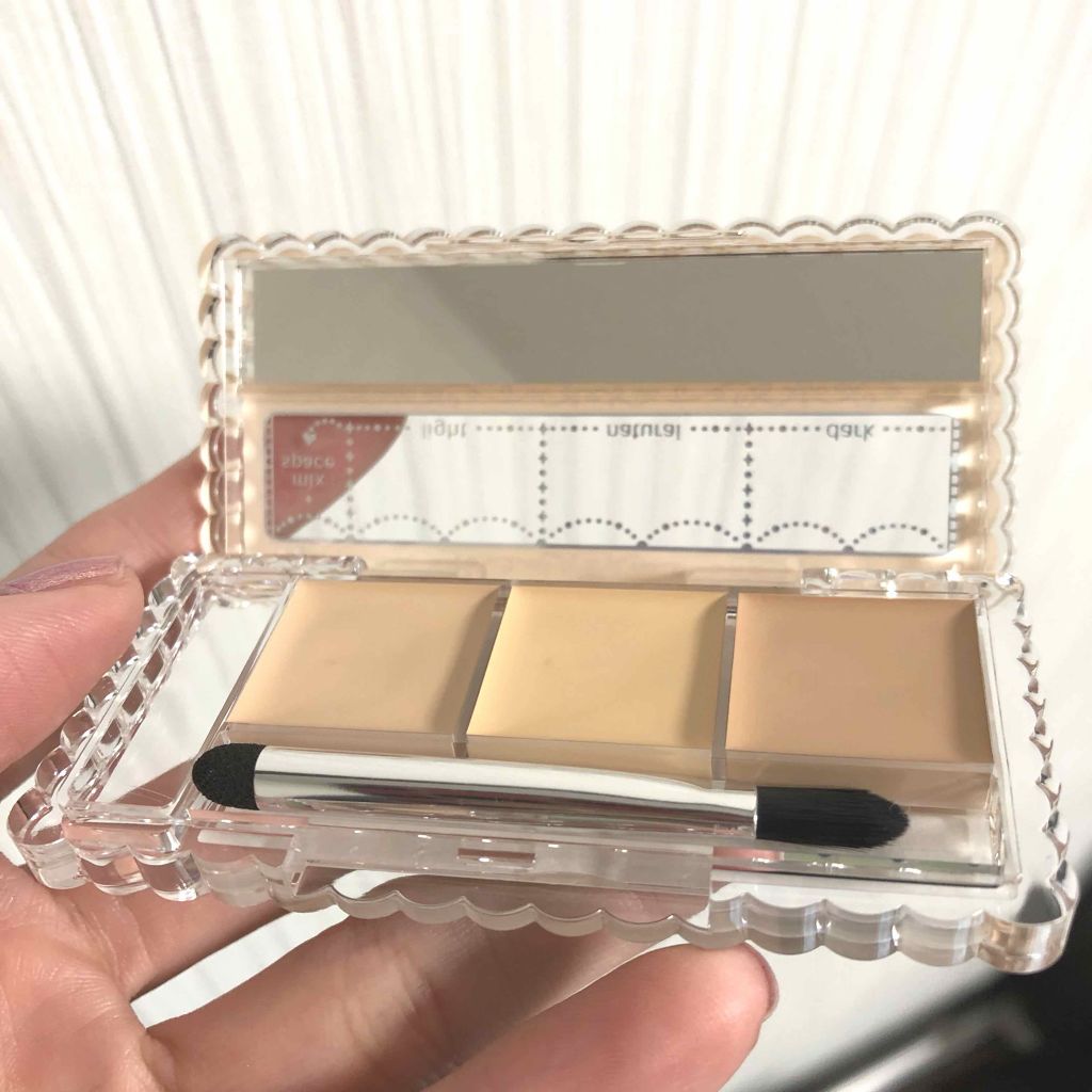 3色入りなので悩み別に使い分けができます☺️ 手頃なお値段なのに鏡、ミックススペース、ブラシがついています𖧷 カバー力はそこそこあります🙆♀️ 固すぎず使いやすいですが、若干乾燥で粉吹いてくるのでメイク前の保湿はしっかりする必要があります