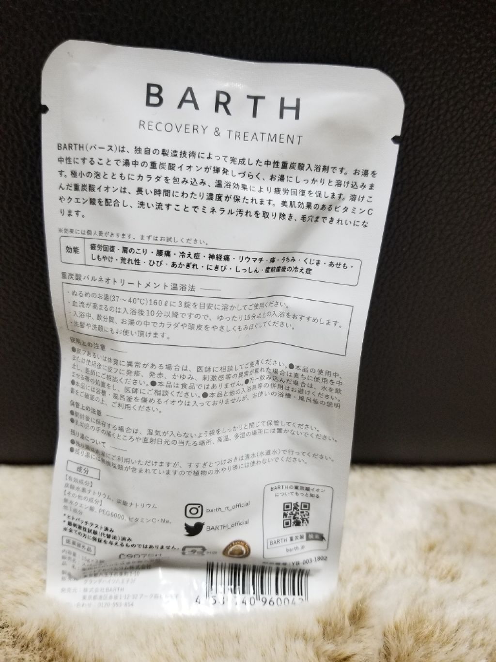 BARTH 中性重炭酸入浴剤 | 990円 |