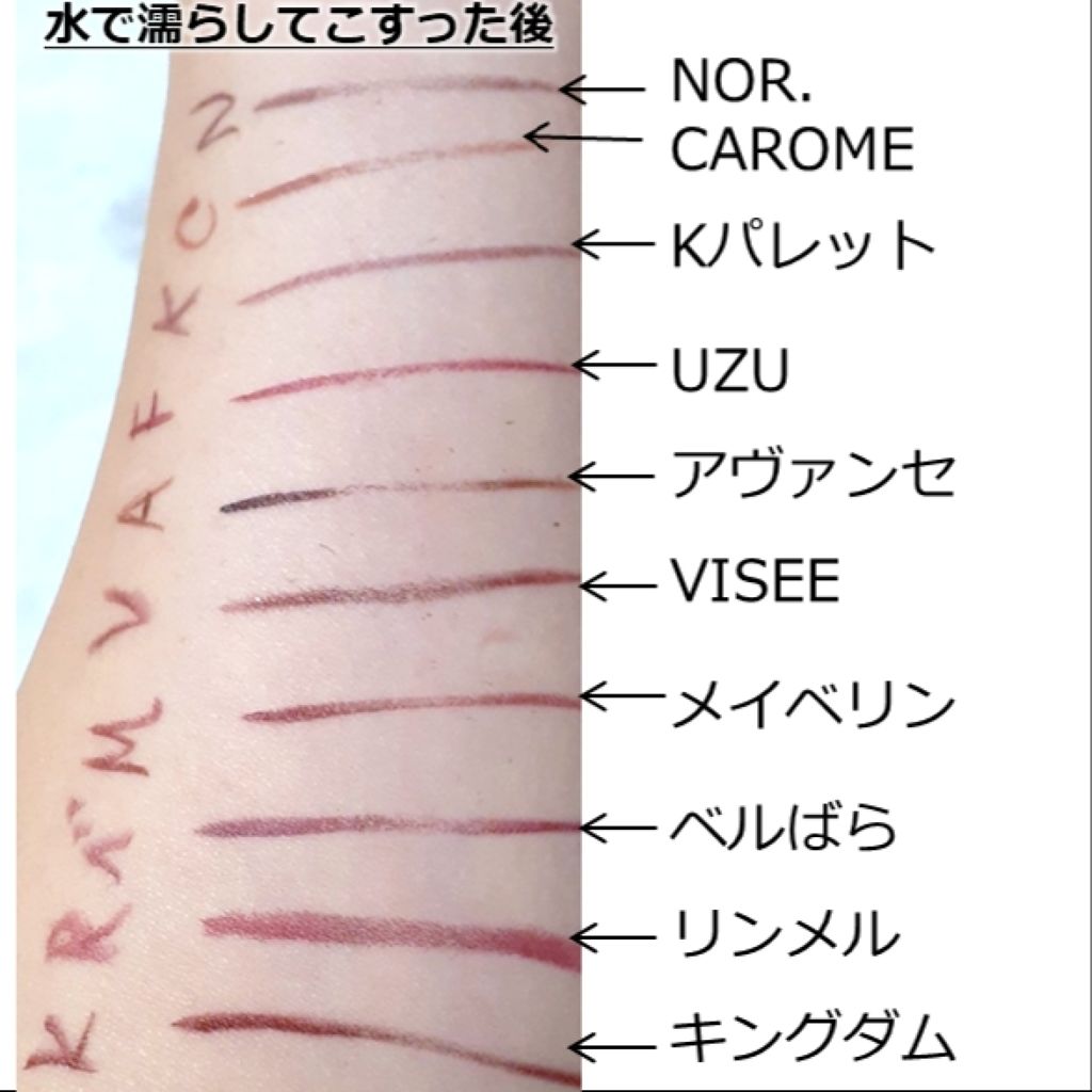 ウォータープルーフタイプでこすれに強いとのことで指で軽くこすってみましたが確かによれないし消えなかった😳✨️ 美容成分も配合されていてまぶたにも優しい🥺 良いことばっかやん!!😂 極細0.1mmの筆先がほんとかきやすい!これは人気のハズだわ。