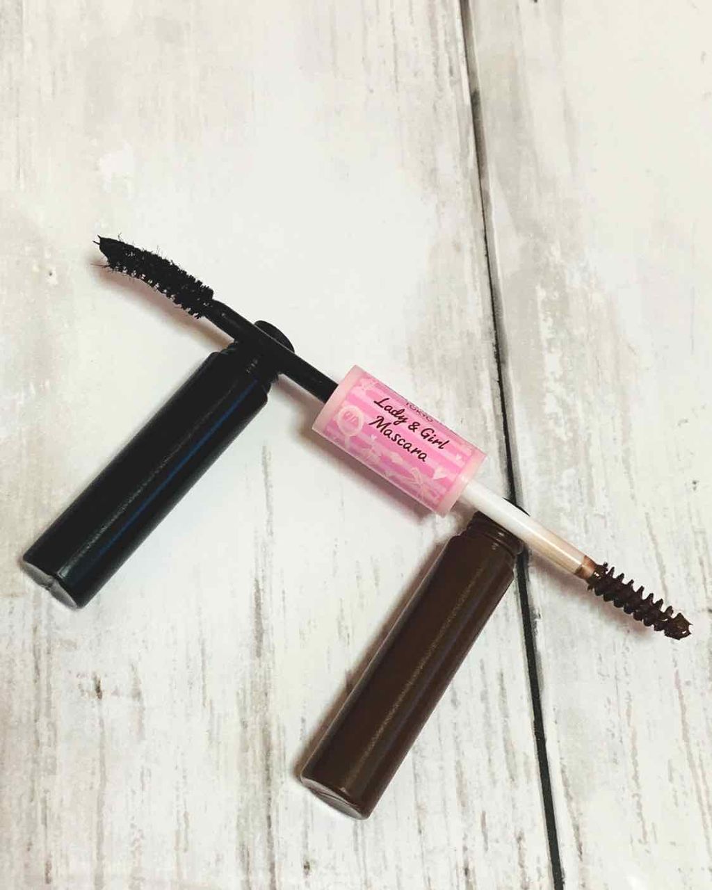 - 2通りの仕上がりが1本で楽しめるダブルエンドマスカラです。繊維入りのブラックマスカラを使えばすっと伸びたロングラッシュのクールなネコ目風に、繊維無しのブラウンマスカラを使えば、やさしいたれ目風の目元を演出します。ウォータープルーフなのにお湯で簡単オフ出来ます。