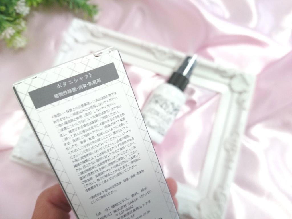 - 元来、自然界には自浄作用があり、植物が果たす浄化作用も大きな役割を担っています。この植物に秘められた機能性に着目し、古来から人間と共存してきた植物の安全性を維持したまま、化学合成された物質に引けを取らない強力な除菌・消臭力を発揮すると共に、快適な空間を演出する香りを楽しむことができる製品となっております。植物から抽出した天然成分でウィルス除去、除菌、消臭、抗カビ、抗菌、*虫よけを行います。気になる場所にスプレーするだけ、拭き取りをしたり水で流したりしない限り有効成分は揮発ぜずにその場に留まります。ボタニシャフトは植物の潜在能力を最大限に生かした、植物性除菌・消臭・抗菌剤スプレー製品です。