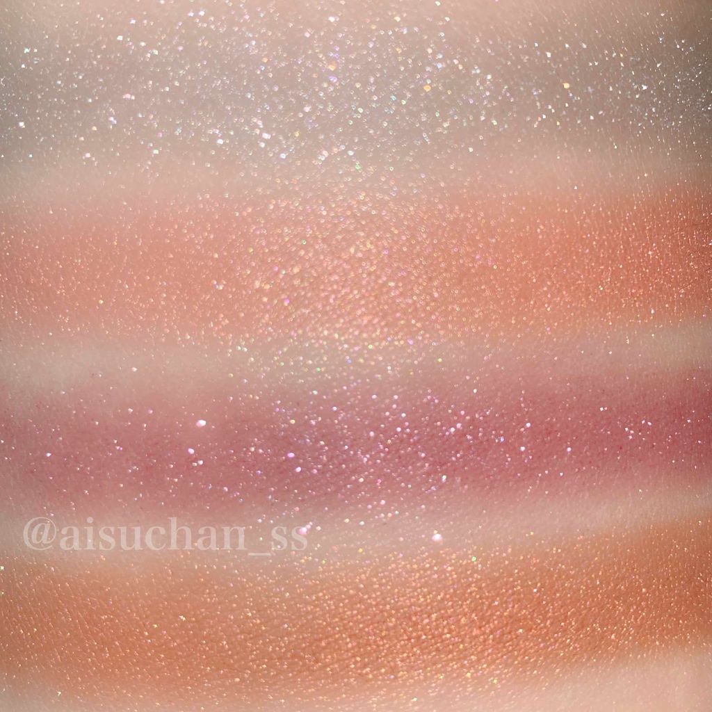 しっとりなめらかな粉質で、肌に光が溶け込む。 ツヤの美しさや発光具合は写真の通り。 ひと塗りで極上の艶を纏うことができます。 私が1番感動したのは 03 パールグロウ 水色やパープルをはじめとした細かいラメがぎっしり。 まるでダイヤモンドのような輝きでこれが最高💎 いざ肌に乗せると透明感たっぷりで白浮きしません。 今日アイシャドウとして使ってみたらまぶたが濡れたように艶めいて最高だった!! ラメ大好き芸人のみなさんは絶対チェックして欲しいです。 パケもしっかり可愛いです♡ 中身も見た目ももはや無敵。 これ、買わない理由ある??