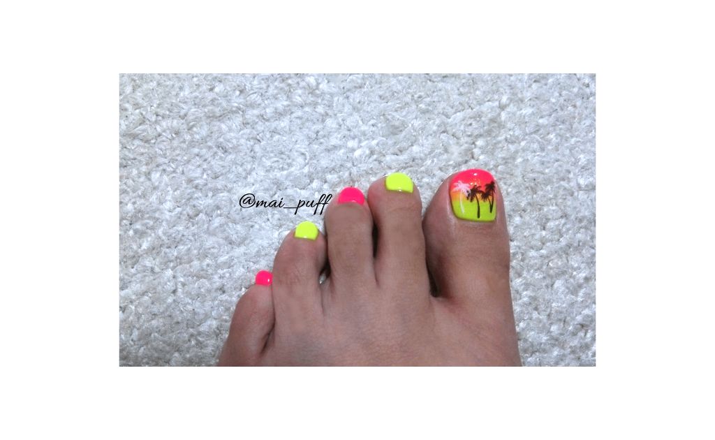 夏っぽーい🏝このフットネイルで海とかオシャレ〜🐠素敵女子‼️セルフネイルみんな上手すぎるわ👏👏