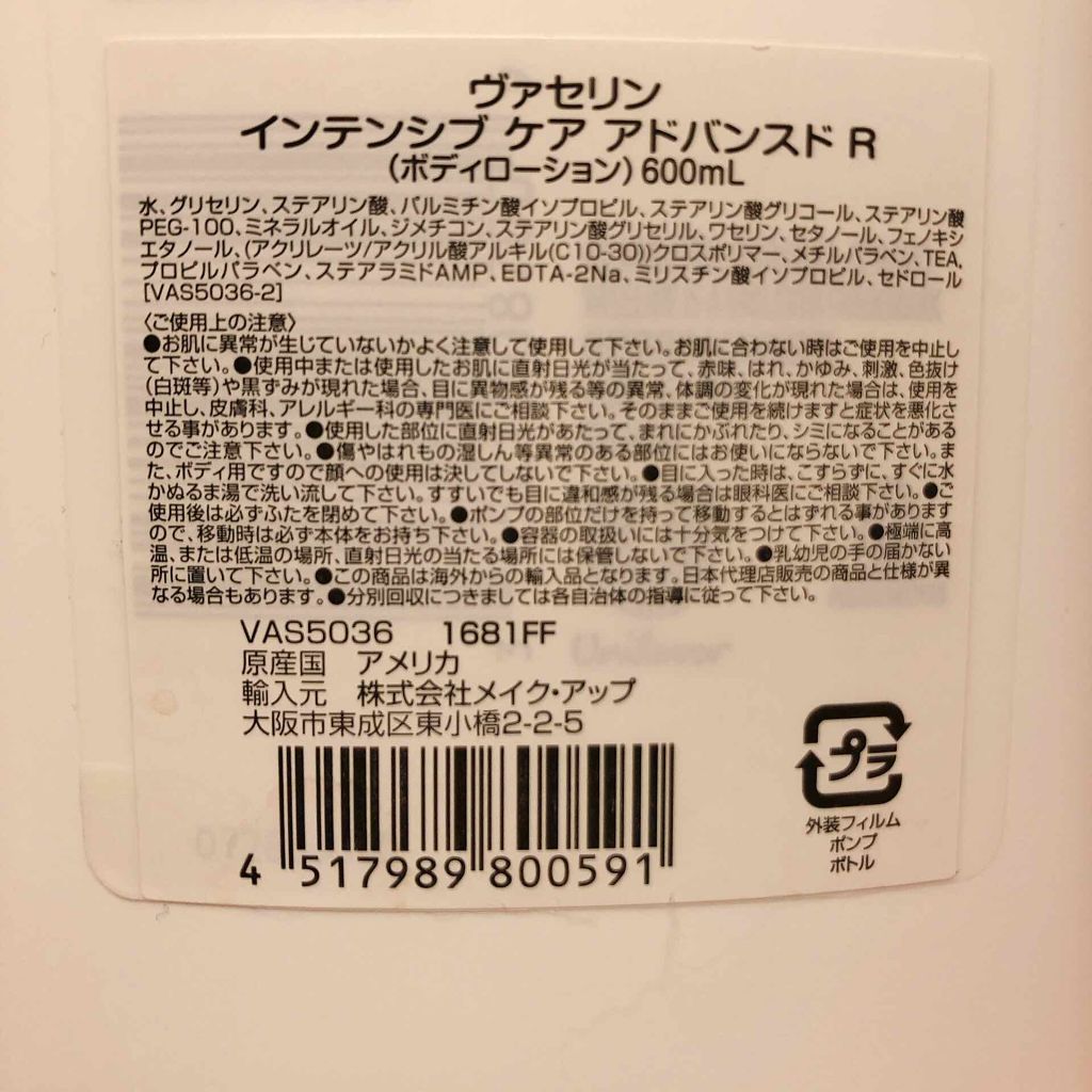 商品詳細情報ヴァセリン ヴァセリン アドバンスドリペア ボディローション 無香料