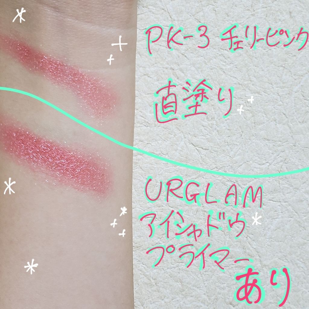ひと塗りで女子力溢れる顔に💕こんにちは❣️ししぃです💋今回は、ダイソーURGLAMアイ&チークカラー💘PK-3ホットピンク💘をスウォッチ&レビューしていきます❣️ダイソーから新しく出た200円商品です😮まず、悪い(?)点です。笑蓋が開けにくい...
