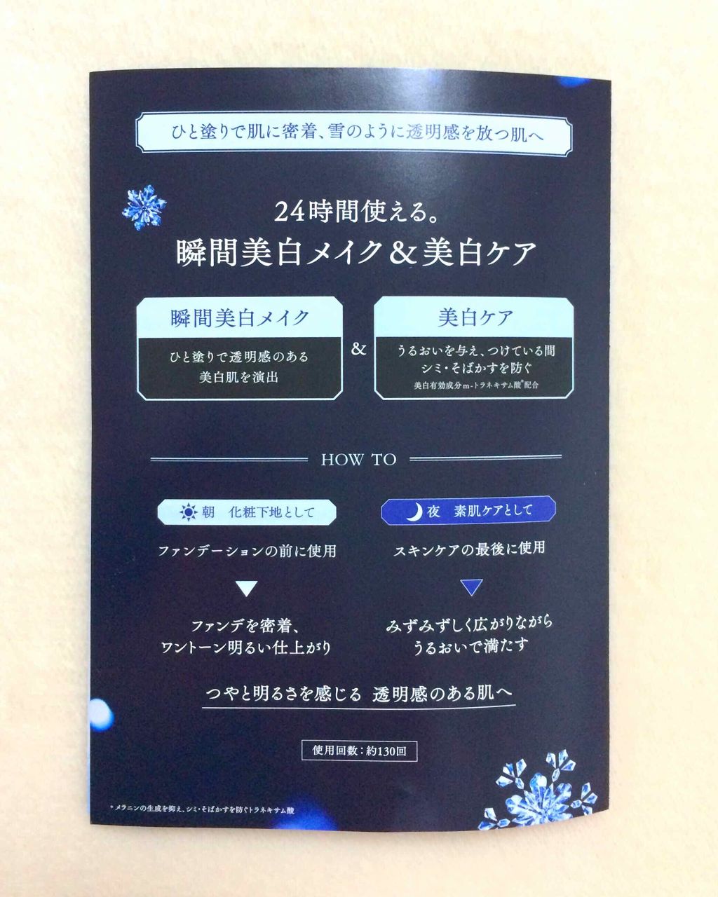 - 2020年7月21日 数量限定発売 朝はトーンアップ下地に、夜は素肌ケアとして24時間使える薬用美白美容液です。 美白肌演出効果とファンデーション密着効果がアップし、つやと明るさを感じる透明感のある仕上がりに導きます。 美白有効成分「m-トラネキサム酸2*」配合で、メラニンの生成を抑えシミ・そばかすを防ぎ、うるおいのある澄んだ肌に整えます。 穏やかにやさしく香る、フローラルアロマの香り。 *メラニンの生成を抑え、シミ・そばかすを防ぐトラネキサム酸