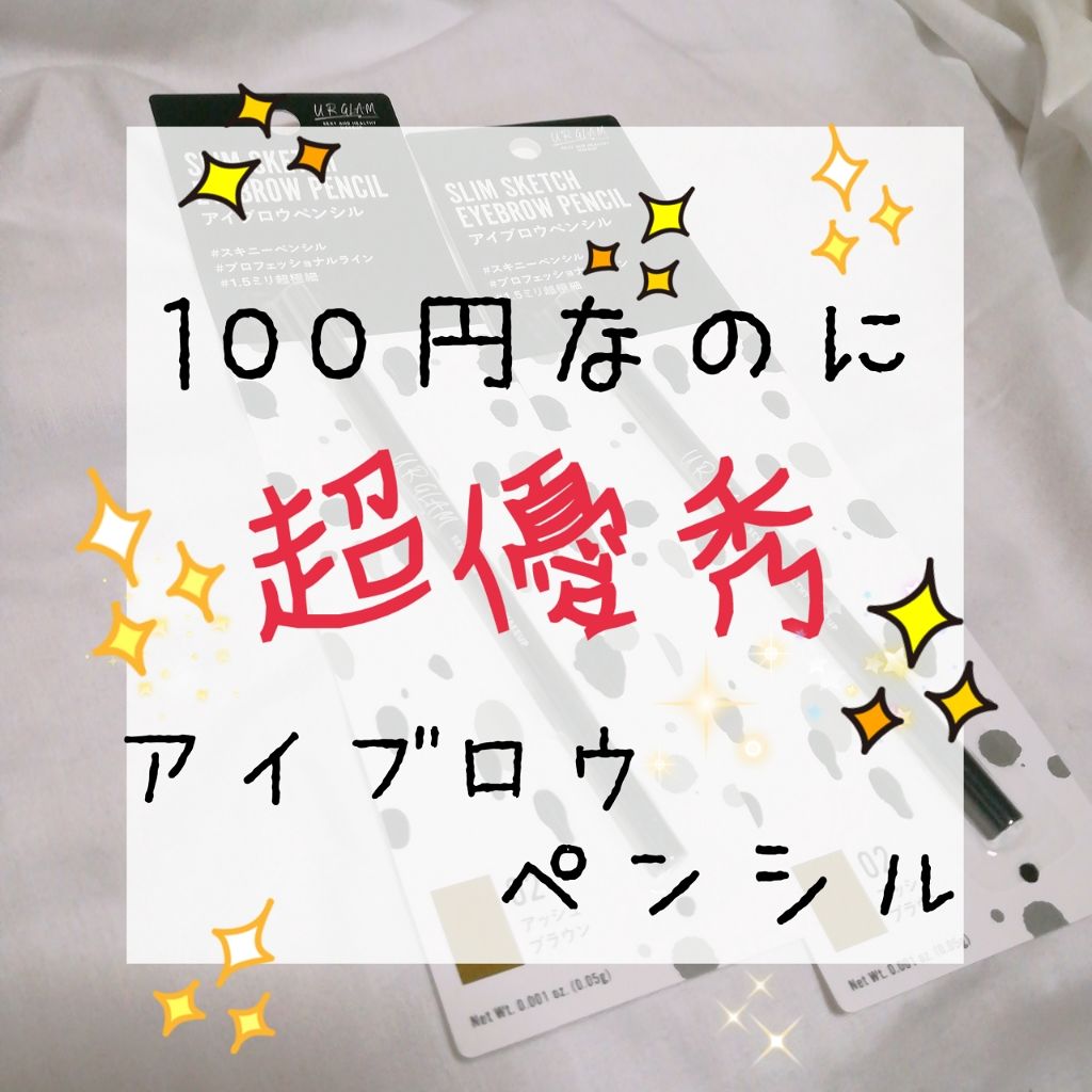 安いし細いしお試し程度で購入しました。 U R GLAM スリムスケッチアイブロウペンシル ダークブラウン ¥110 やや力を入れないと色がのらないのですが、眉毛が少ないところに使えます。 安いのでアイブロウペンシル初心者にはおすすめ