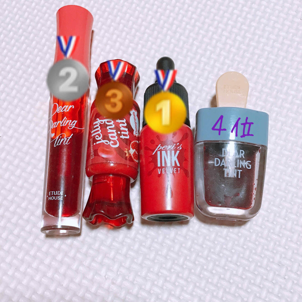 エチュードディアダーリンウォータージェルティントカラーPK004アズキバーアイスバーをモチーフとしたパッケージが可愛くて購入♪フルーツ系の甘い香りがするの🥰色味はピンクパープルのような落ち着いたピンクで、付けた時に色味のギャップがない仕上がり...