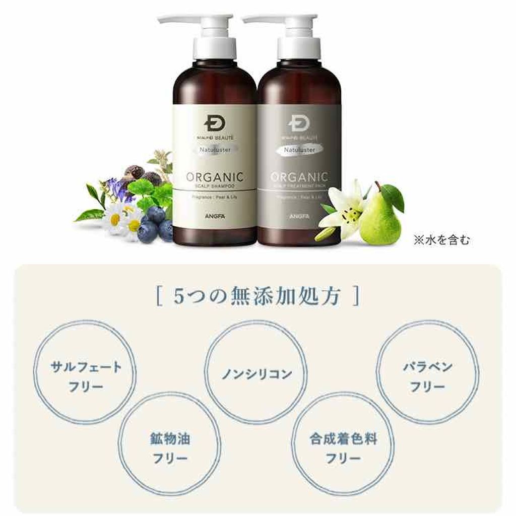 - スカルプDのオーガニックシャンプーは、毎日のシャンプー&トリートメントで髪の土台となる頭皮ケアが簡単に出来、さらツヤ髪へと導きます。 乾燥・かゆみ・ベタつき・ニオイを感じる気まぐれな頭皮に、10種類のオーガニック認証成分でアプローチするアミノ酸系の洗浄成分を使用したシャンプー。 敏感な頭皮を優しく包み込む濃厚もっちり泡で、毛穴に詰まった皮脂や汚れを優しく洗い流します。 70種類以上の豊富なミネラルが髪をコートすると同時に、シャンプーの泡がキューティクルの間に挟まる有害物質(金属、イオン等)を取り除きツヤ髪へ導きます。 トリートメントは髪だけでなく頭皮まで保湿でき、乾燥とかゆみを防ぎます。さらに、優しさだけでなくツヤにもこだわり、健康食品にも使用されるハイグレードのオーガニックミネラルを配合。 トリートメントでひらいたキューティクルを整えることで、ツヤ髪へ導きます。 バスタイムに癒しを与える上品なペア&リリーの香り