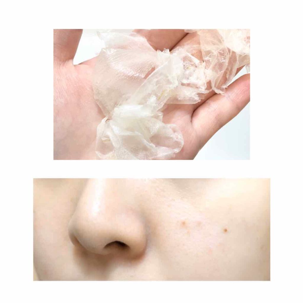 テクスチャーはトロトロしていて伸びが良いよ。 時間が経つにつれてマスクが固まってきて、まるで石化した気分に🤣笑 剥がすときは基本綺麗に剥がれるけど、髪の毛に付くと大変かも。 使用後の肌はワントーンアップした気がしたし、ザラつきもなくなったような🥰