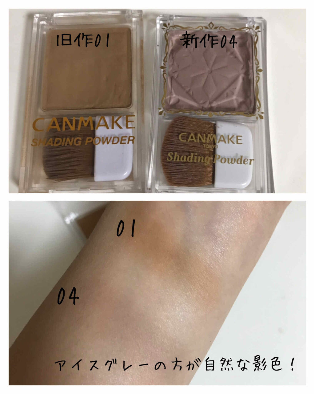 コスパ最強シェーディングʕ•ᴥ•ʔ 今日レビューするのは、キャンメイクのシェーディングパウダー04アイスグレーブラウンです! こちらのシェーディングはブルベカラーのシェーディングで、黄味感がほとんどなく、ブルべ夏の私の肌にはとてもなじんでくれました^ㅠ ̫ ㅠ^♡ 特に粉飛びをすることもなく、色が付きすぎることもないので初心者の方でも使いやすいかなという印象ですÒ ·̫ Ó