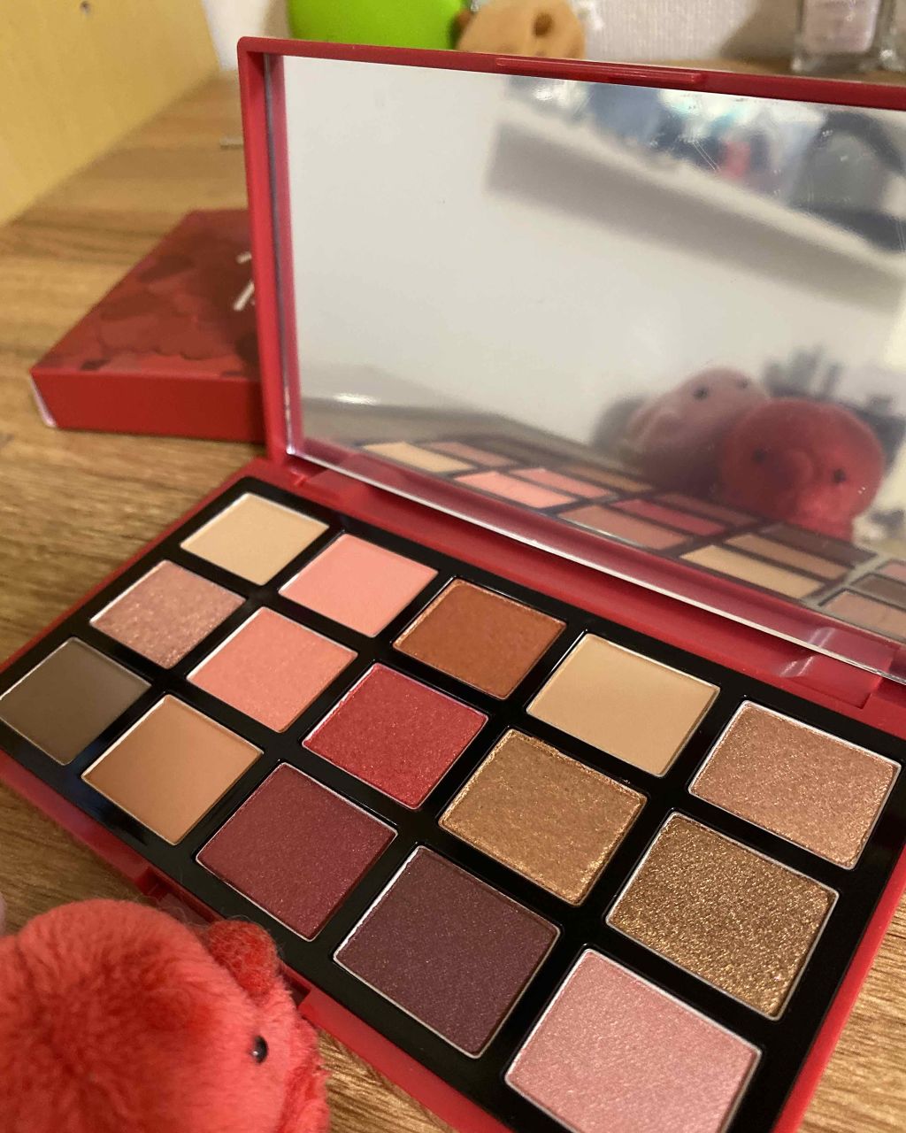 - ◆ハート弾む、人気の愛されカラーを集めた15色入りアイシャドウパレット 肌にきれいに馴染む愛されカラーで、カジュアルな女性らしさをアピールする15色アイシャドウパレット。 定番のブラウンベージュや、温かみのあるオレンジブラウン、少し大人な色っぽさを演出するレッドブラウンまで、欲しかったカラーが1つに。 大人気のルックアットシリーズから選んだベストカラーで、誰もが憧れるようなキュートな愛されアイに仕上げます。 ◆あなたのハートを射止める3種類のテクスチャー 立体的な目元に仕上げるなめらかなマット、肌馴染みが良くやわらかいシルク、透明感と輝きをプラスするパール。 3種類の質感を使い分けて旬な目元に仕上げたり、あえてマットな質感でいつもよりクールな目元に仕上げたり、組み合わせ次第で目元を自由に演出できます。 なりたい印象に合わせてメイクが楽しめる夢のアイシャドウパレットです。
