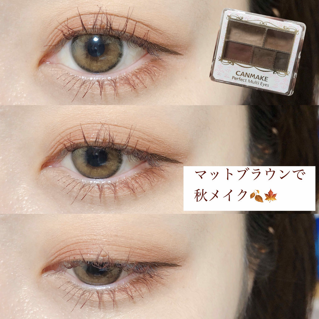 キャンメイクパーフェクトマルチアイズマットアイシャドウ好きにはたまらないアイシャドウ。画像3枚目そこ見えしてるカラーをアイホールに。このカラーアイホールにすごくいい。アイホールにアイシャドウ塗るの苦手なんだけどこのカラーは薄づきで失敗すること...