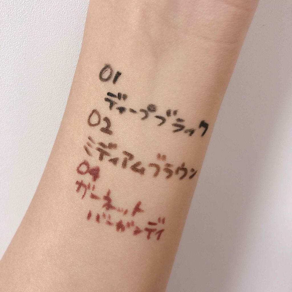 - <01 ディープブラック> メチルトリメチコン、トリメチルシロキシケイ酸、(アクリレーツ/アクリル酸ステアリル/メタクリル酸ジメチコン)コポリマー、ポリエチレン、カルナウバロウ、キャンデリラロウ、ジメチコン、水添レシチン、シリカ、メタクリル酸メチルクロスポリマー、トコフェロール、スクワラン、ホホバ種子油、マカデミア種子油、ヒアルロン酸Na、メチコン、(+/-)水酸化Al、酸化鉄、マイカ、酸化チタン <02 ミディアムブラウン> メチルトリメチコン、トリメチルシロキシケイ酸、(アクリレーツ/アクリル酸ステアリル/メタクリル酸ジメチコン)コポリマー、ポリエチレン、カルナウバロウ、キャンデリラロウ、ジメチコン、水添レシチン、シリカ、メタクリル酸メチルクロスポリマー、トコフェロール、スクワラン、ホホバ種子油、マカデミア種子油、ヒアルロン酸Na、メチコン、(+/-)水酸化Al、酸化鉄、マイカ、酸化チタン <03 ダークブラウン> メチルトリメチコン、トリメチルシロキシケイ酸、(アクリレーツ/アクリル酸ステアリル/メタクリル酸ジメチコン)コポリマー、ポリエチレン、カルナウバロウ、スクワラン、ジメチコン、水添レシチン、シリカ、トコフェロール、メタクリル酸メチルクロスポリマー、キャンデリラロウ、ホホバ種子油、マカデミア種子油、ヒアルロン酸Na、メチコン、水酸化Al、酸化鉄、酸化チタン、マイカ <04 ガーネットバーガンディ> メチルトリメチコン、トリメチルシロキシケイ酸、(アクリレーツ/アクリル酸ステアリル/メタクリル酸ジメチコン)コポリマー、ポリエチレン、カルナウバロウ、ジメチコン、キャンデリラロウ、水添レシチン、シリカ、トコフェロール、メタクリル酸メチルクロスポリマー、スクワラン、ホホバ種子油、マカデミア種子油、ヒアルロン酸Na、メチコン、水酸化Al、酸化鉄、グンジョウ、酸化チタン、マイカ <06 フォギープラム> メチルトリメチコン、トリメチルシロキシケイ酸、(アクリレーツ/アクリル酸ステアリル/メタクリル酸ジメチコン)コポリマー、ポリエチレン、カルナウバロウ、ジメチコン、キャンデリラロウ、水酸化Al、水添レシチン、シリカ、トコフェロール、メタクリル酸メチルクロスポリマー、スクワラン、ホホバ種子油、マカデミア種子油、ヒアルロン酸Na、メチコン、酸化鉄、グンジョウ、酸化チタン、マイカ <07 アズキブラウン> メチルトリメチコン、トリメチルシロキシケイ酸、(アクリレーツ/アクリル酸ステアリル/メタクリル酸ジメチコン)コポリマー、ポリエチレン、カルナウバロウ、キャンデリラロウ、ジメチコン、水添レシチン、シリカ、トコフェロール、メタクリル酸メチルクロスポリマー、スクワラン、ホホバ種子油、マカデミア種子油、水酸化Al、ハイドロゲンジメチコン、ヒアルロン酸Na、メチコン、酸化鉄、グンジョウ、マイカ、酸化チタン <09 ダージリンピンク> メチルトリメチコン、トリメチルシロキシケイ酸、(アクリレーツ/アクリル酸ステアリル/メタクリル酸ジメチコン)コポリマー、合成ワックス、カルナウバロウ、キャンデリラロウ、ジメチコン、水酸化Al、ハイドロゲンジメチコン、水添レシチン、シリカ、トコフェロール、メタクリル酸メチルクロスポリマー、スクワラン、ホホバ種子油、マカデミア種子油、ヒアルロン酸Na、メチコン、酸化鉄、酸化チタン、マイカ、グンジョウ <11 クラウディーグレー> メチルトリメチコン、トリメチルシロキシケイ酸、(アクリレーツ/アクリル酸ステアリル/メタクリル酸ジメチコン)コポリマー、合成ワックス、カルナウバロウ、ジメチコン、キャンデリラロウ、水酸化Al、水添レシチン、シリカ、トコフェロール、メタクリル酸メチルクロスポリマー、ハイドロゲンジメチコン、スクワラン、ホホバ種子油、マカデミア種子油、ヒアルロン酸Na、メチコン、酸化鉄、酸化チタン、マイカ <15 カプチーノピンク> メチルトリメチコン、トリメチルシロキシケイ酸、(アクリレーツ/アクリル酸ステアリル/メタクリル酸ジメチコン)コポリマー、合成ワックス、カルナウバロウ、ジメチコン、キャンデリラロウ、水酸化Al、水添レシチン、シリカ、トコフェロール、メタクリル酸メチルクロスポリマー、スクワラン、ホホバ種子油、マカデミア種子油、ヒアルロン酸Na、メチコン、酸化チタン、酸化鉄、マイカ <05 ビターキャラメル> メチルトリメチコン、トリメチルシロキシケイ酸、(アクリレーツ/アクリル酸ステアリル/メタクリル酸ジメチコン)コポリマー、ポリエチレン、カルナウバロウ、ジメチコン、キャンデリラロウ、水添レシチン、シリカ、トコフェロール、メタクリル酸メチルクロスポリマー、スクワラン、ホホバ種子油、マカデミア種子油、ヒアルロン酸Na、メチコン、水酸化Al、酸化鉄、マイカ、酸化チタン <08 マッチャカーキ> メチルトリメチコン、トリメチルシロキシケイ酸、(アクリレーツ/アクリル酸ステアリル/メタクリル酸ジメチコン)コポリマー、合成ワックス、