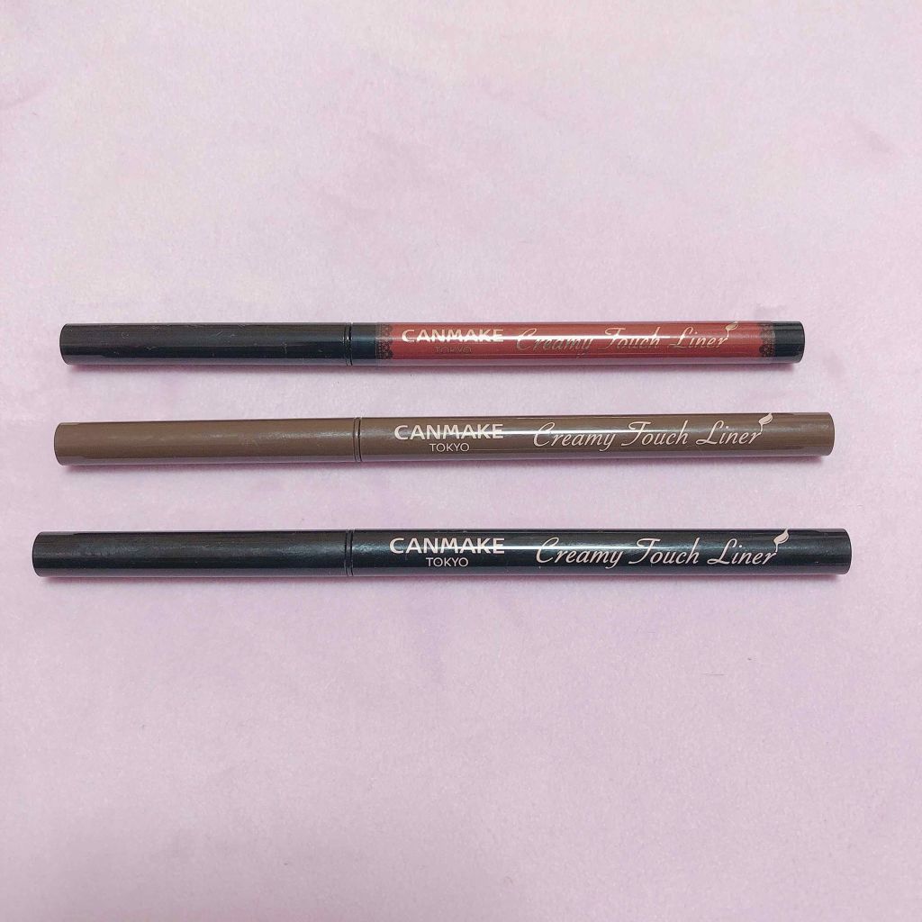 人気のCANMAKEクリーミータッチライナーから、私がよく使う3色をご紹介します💁🏻♀️ ボルドーメイクや赤系のメイクに活躍する大人っぽいバーガンディカラー💋 深めのレッドカラーなので、大人っぽいメイクにも使いやすくて良く使います🤫 今年の新色🧚🏻 本当の抹茶のような深いグリーンが、カーキメイクにも活躍しますし、オレンジメイクと合わせてもかわいいです😍