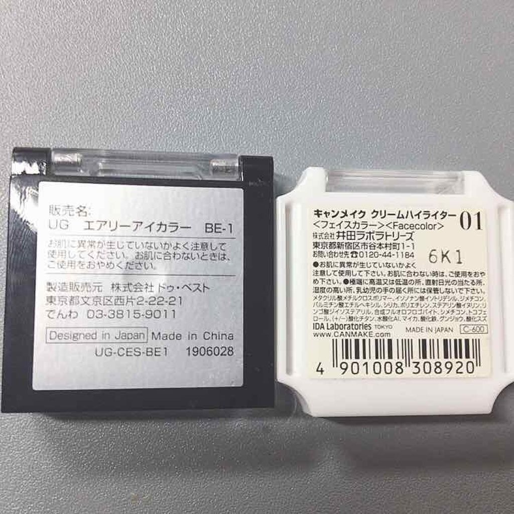 キャンメはむにゅっと柔らか、URGLAMは比べたら少しパサッとしてる感じがする。 キャンメはしっかりキラキラ✨で付け過ぎるとギラギラしてしまう⚠️ URGLAMはかなり控えめにキラキラ✨で多めに付けてもギラギラにはならない。 キャンメは密着度が高く、長時間よれないから塗り直さなくてOK👌で汗ばんでもちゃんと残ってくれている。