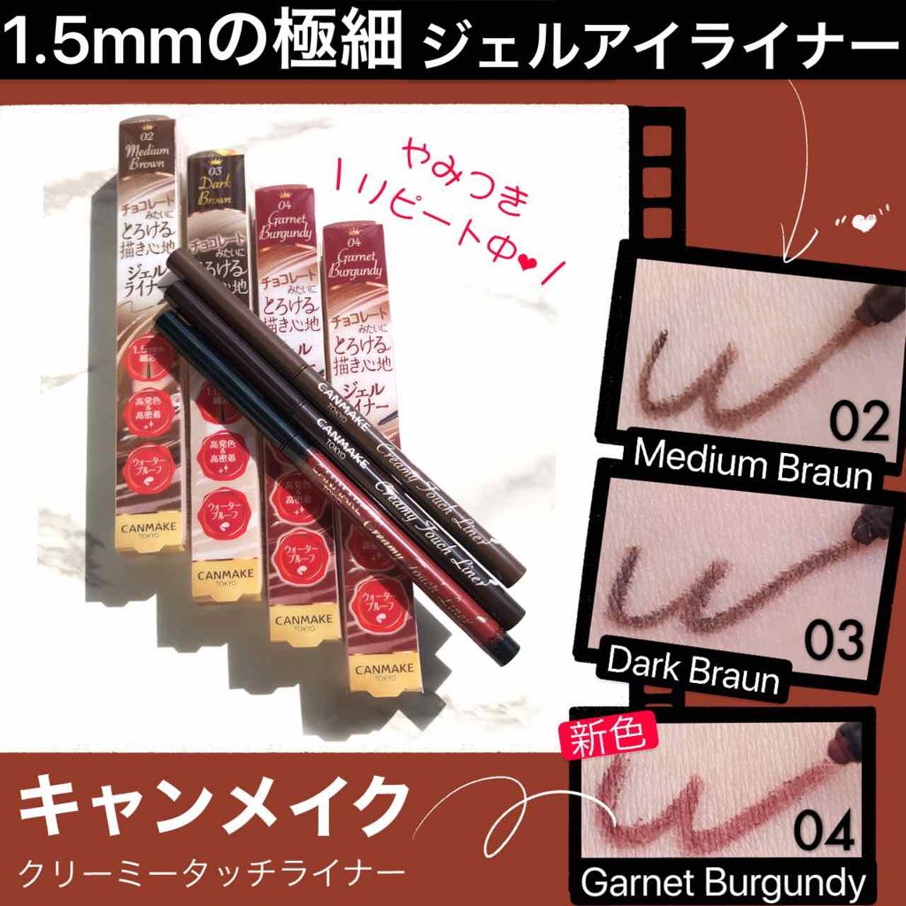 アイライナーはこのシリーズが大好きで全色所有しています♡ こちらの04 ガーネットバーガンディは赤みよりのブラウンのアイシャドウや赤みよりのバーガンディ系のお色味のアイシャドウと合わせるのが好きです♡ スルスル描きやすい 発色がいい お色味がオシャレ 汗や水に強い 落ちにくい これからもリピートします♪
