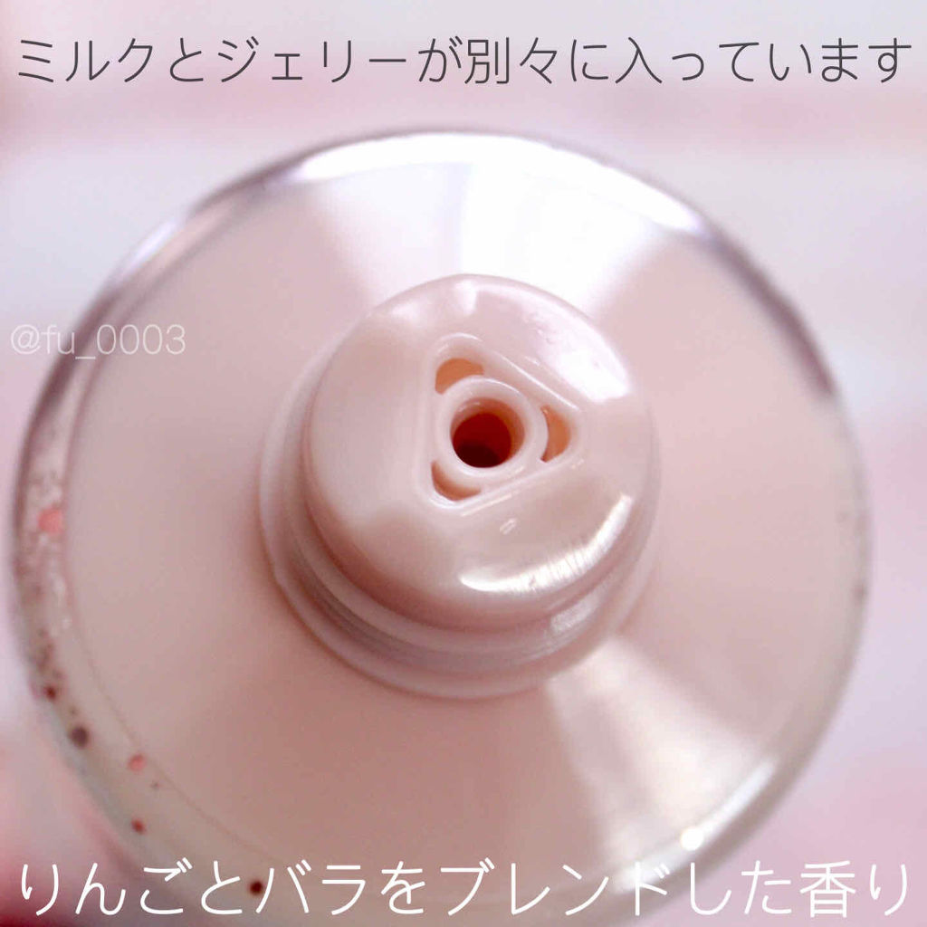 - ミルクとジェリ―の洗い流す2層トリートメント。 お風呂上りのブローだけで、翌朝セットしやすい、なめらかカシミア髪へ。 濃厚ミルクは高級美容液「リポショット*」配合で、深刻なパサつき・うねりを補修。 ぷるぷるジェリーが、開いたキューティクルをパック。朝の広がり・からまり・枕癖・寝ぐせ等の一因である、水分の過剰な出入りを防ぎます。 幸せを引き寄せる、もぎたてりんごとバラの花をブレンドした、女性らしい香りです。 *リポショット=セタノール、ステアリルアルコール/コンディショニング成分