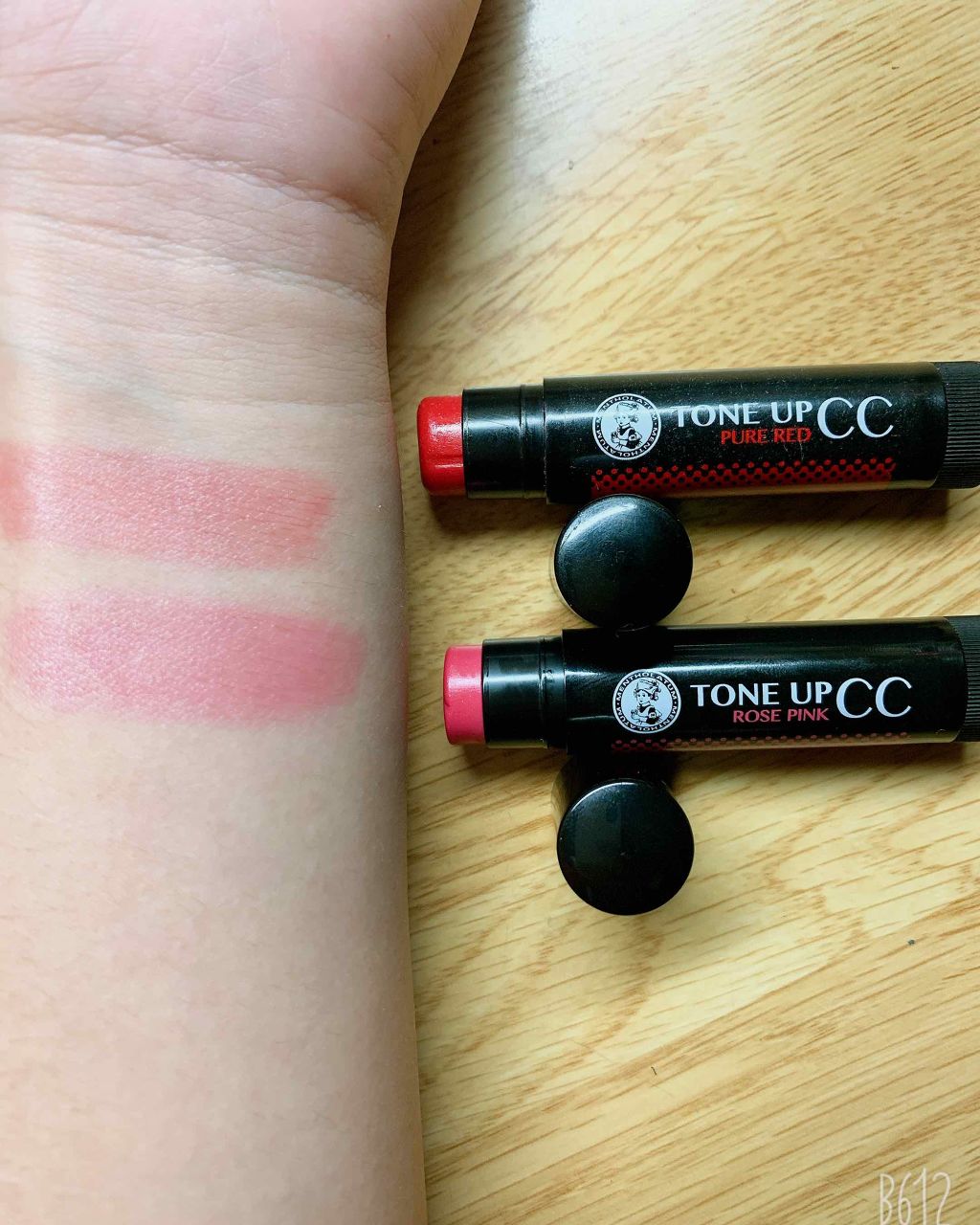- <ピュアレッド> エチルヘキサン酸セチル、ポリエチレン、リンゴ酸ジイソステアリル、脂肪酸(C10-30)(コレステロール/ラノステロール)エステルズ、メトキシケイヒ酸エチルヘキシル、ラノリン、ワセリン、マイクロクリスタリンワックス、水、ホホバ種子油、オリーブ果実油、トコフェロール(ビタミンE)、酢酸トコフェロール(ビタミンE誘導体)、テトラヘキシルデカン酸アスコルビル(ビタミンC誘導体)、1,2-ヘキサンジオール、t-ブチルメトキシジベンゾイルメタン、オレイン酸ポリグリセリル-4、トリイソステアリン酸ポリグリセリル-2、ハイドロゲンジメチコン、ポリリシノレイン酸ポリグリセリル-6、硫酸Ba、合成金雲母、酸化チタン、黄4、赤201、赤202