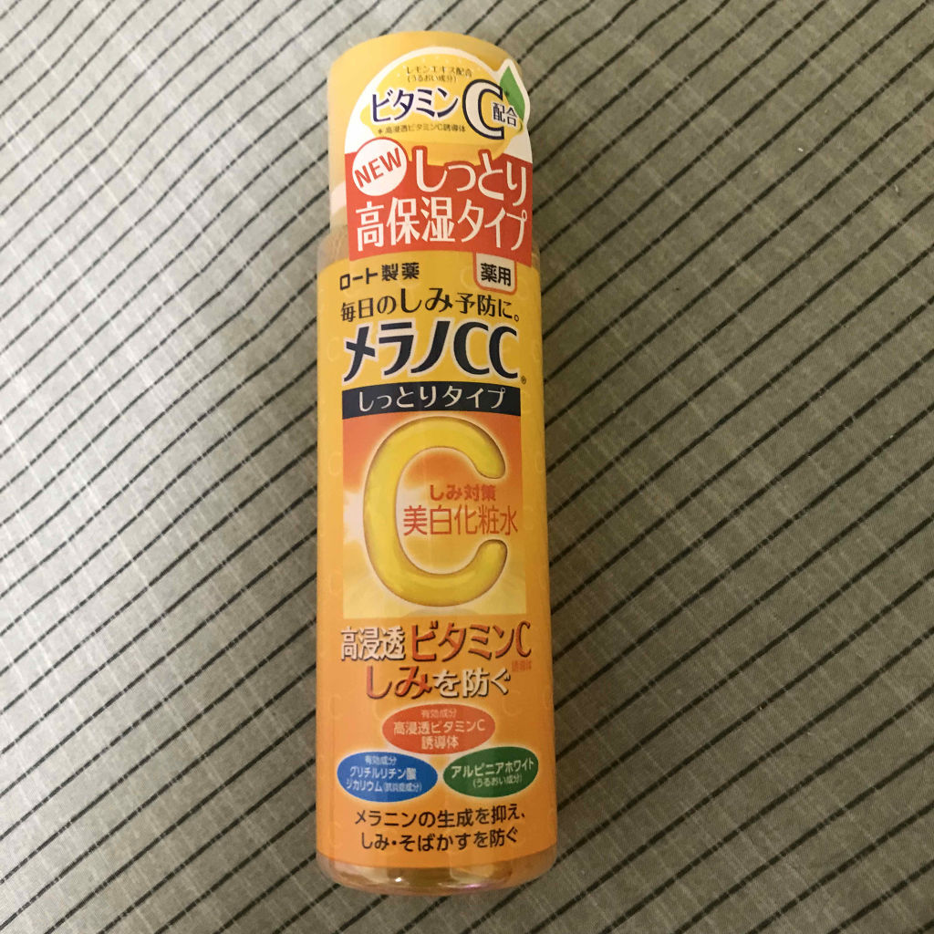 - 「メラノCC 薬用しみ対策 美白化粧水 しっとりタイプ」は、顔全体にうるおいを与えながら、しみ対策できる薬用美白化粧水。 美白有効成分の高浸透ビタミンC誘導体*1が角質層のすみずみまで浸透し、メラニンの生成を抑え、しみ・そばかすを防ぎ、透明感のある肌へと導きます。 また、抗炎症成分*2と3種のうるおい成分*3を配合。ニキビ痕が気になる肌にもうるおいを与え、肌を整えます。 さわやかな柑橘系の香りです。 *1:3-O-エチルアスコルビン酸 *2:グリチルリチン酸ジカリウム *3:アルピニアホワイト、レモンエキス、グレープフルーツエキス