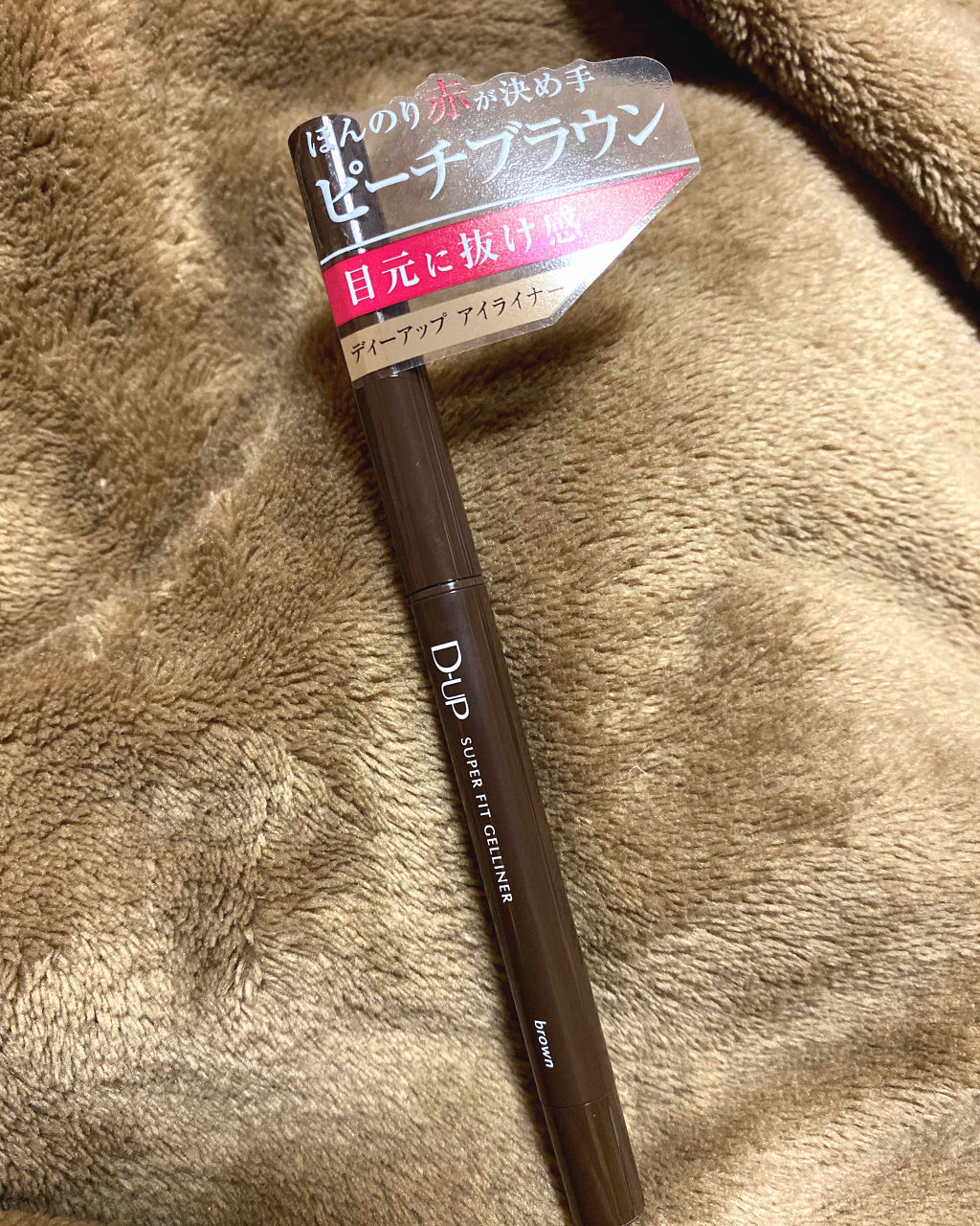 するする書ける繰り出しタイプのジェルライナーです 使用感はとてもよく、落ちにくくてさすがD-UPと思いました! 色味はピーチブラウンなのですが、ほんのり赤みを感じるかなという感じで、結構ブラウンブラック寄りで、ピーチ感は感じませんでした。
