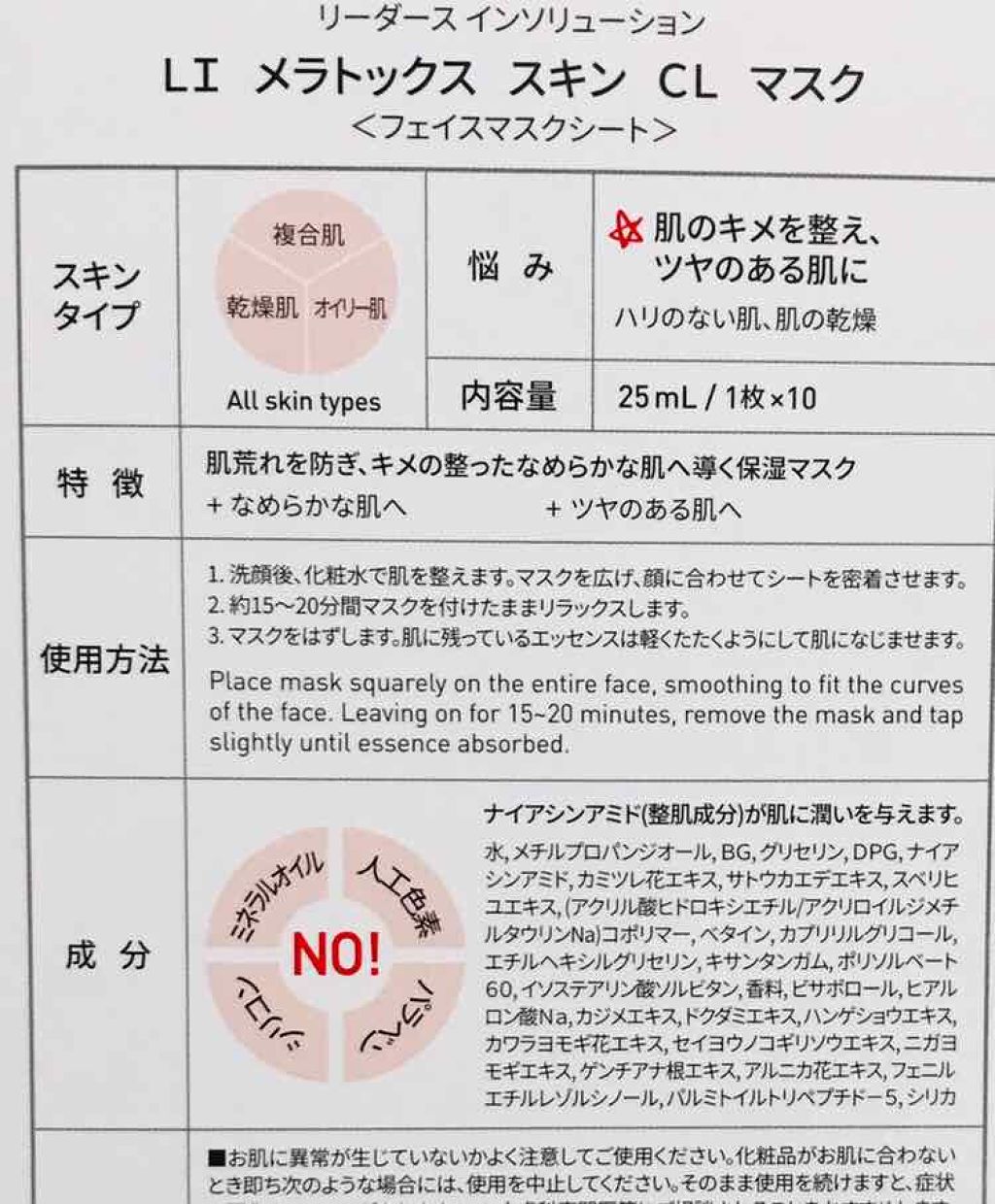 商品詳細情報LEADERS メラトックス スキン クリニック マスク