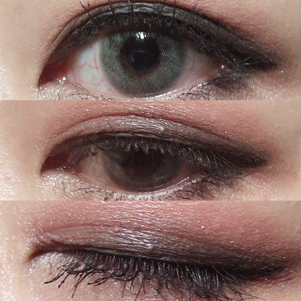Kaleidosのラメ混じりの黒アイシャドウを使いました!めっちゃ濃いし良いこれ! 私的には深みが出るからafterの写真がお気に入り🖤 カラポのRipple、ベースがピンクなんだけどブルーラメが強めなの可愛かった🥺