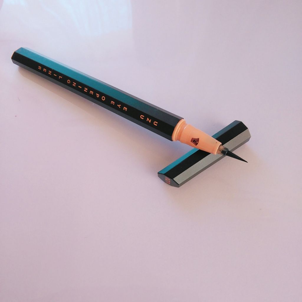 👀UZUBYFLOWFUSHIEYEOPENINGLINERダークネイビーをネットで購入。大和匠筆のフェルト筆で、太くも細くも跳ね上げも綺麗に描ける。色は思っていたよりブルーが明るい印象。#UZUBYFLOWFUSHI#EYEOPENINGL...