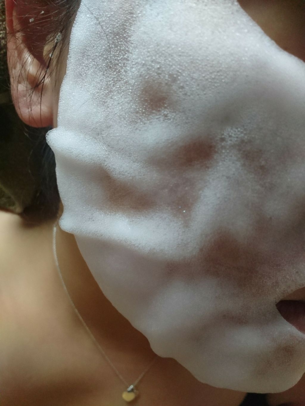 つけてから10分くらいすると泡まみれに😶🌫️ 鼻パックも入ってるから鼻周りもしっかり浸透する! なにより本当にトーンアップする!!⛄️ 白くなりたい人は絶対使って! クレンジングマスクだから取ったあと洗い流す必要があるから注意☝️