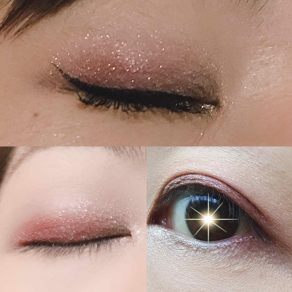 エチュードのキラキララメシャドウをアイホール全体に塗布。 ラメをいっぱい使ってキラキラした目元に仕上げてみました🥰 単色アイシャドウでメイクするの楽しい! 次は何色でやろうかな?
