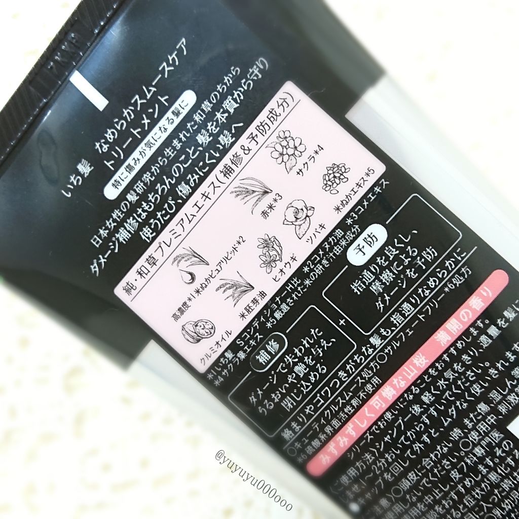 特に摩擦に弱いダメージ毛のことを考えた、指通りよく洗える“ふわ密泡”処方! ダメージ毛にぐんぐん浸透する浸透型トリートメント! いち髪シリーズは香りが良いのも特徴🌸 今回のシャントリは八重桜の香りでした!