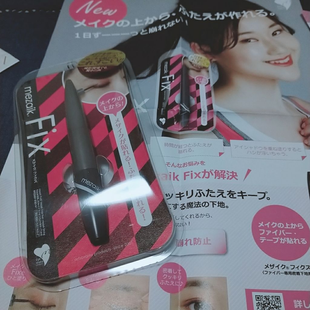 - 一日崩れないふたえをキープするふたえ下地剤 アイシャドウを盛っても崩れないふたえを作りたい、という「メザイク」ファンの強い要望から生まれたメイクに強いふたえ下地剤。 メイクをした後に少量をふたえラインに塗ってから、ファイバーやテープを貼ると、メイクをコートし1日崩れないふたえをキープ。 浮きがちなファイバーやテープのハシも直して密着させます。透明液なのでメイクの邪魔になりません。もちろんメイクをする前でも使えます。