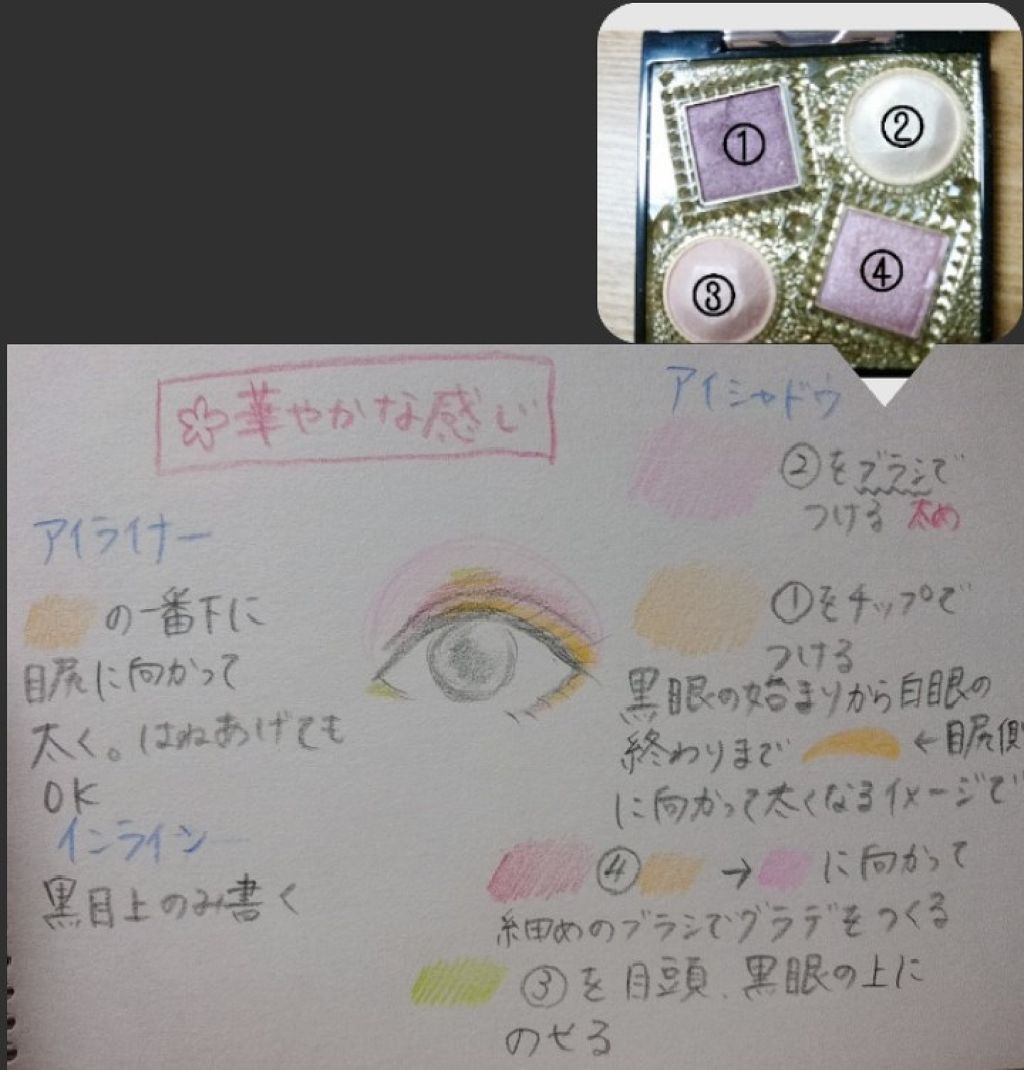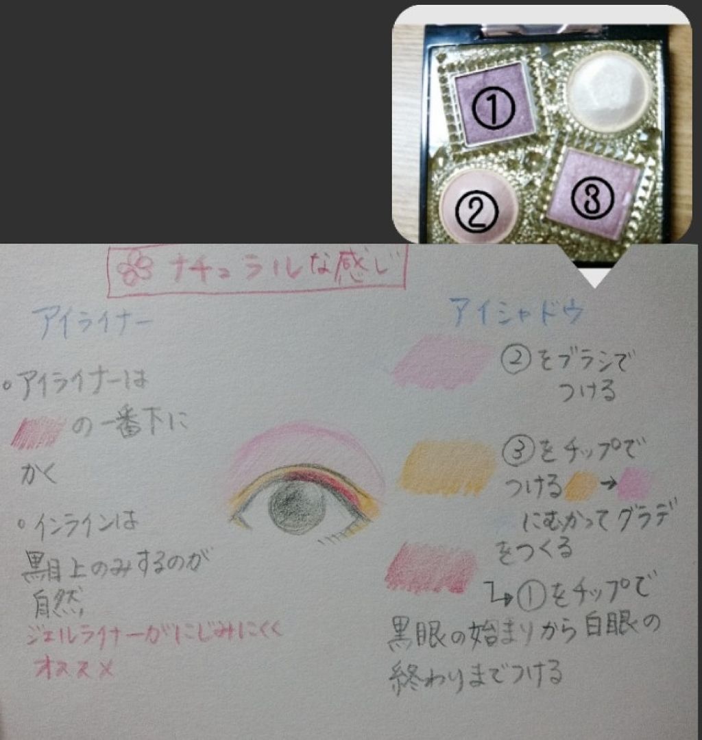 絵が上手いっ!!(º ロ º )✨✨✨ 文字も読みやすい👏👏👏 このアイシャドウ繊細でオシャレなパープルやね💕 可愛いなぁ💕