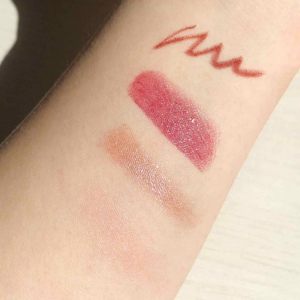 #CLIO#プロアイパレット#SIMPLYPINK#RUSTEDROSE比べてみたらこんな感じ💕2枚目に#スウォチあります!RUSTEDROSEの方が少々トーンダウンしてるけどラメが多い感じかな…🤔ラメの勝者はRUSTE...