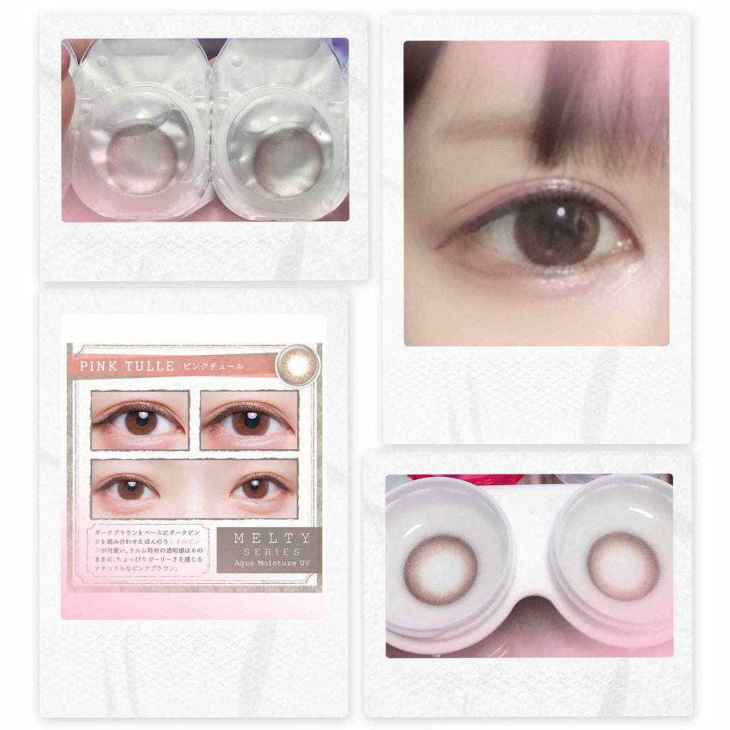 ふんわり透明感アップ♡ ピンク系だけど瞳に馴染む ✔︎付け心地も良い♡ 私は裸眼が暗めだから裸眼と比べると結構透明感が出てると思います♡ でも暗いところで見ると色味はかなり自然です! 高含水レンズだからかな? ドライアイの人は目薬さしつつ使うと良いみたい♡