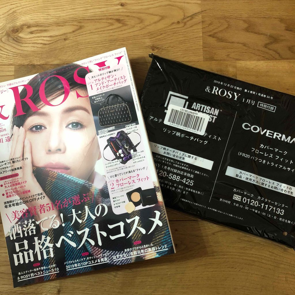 &ROSY1月号が豪華すぎる…!!付録のポーチは可愛いリップ柄のアルティザン・アンド・アーティストの大容量メイクポーチバッグとカバーマークのフローレスフィット。アルティザンの付録ポーチは無地のもリップ柄のも星柄のも買ってて「ポーチいっぱいある...