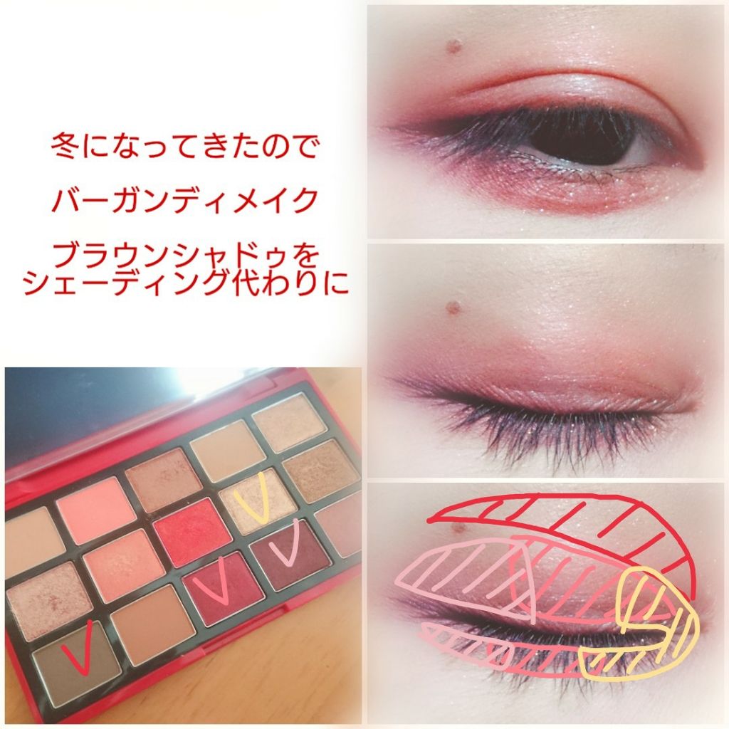 アイメイク日記✎* 💮ETUDE HOUSE BEST LOVED お久しぶりですな投稿です。 安定のパレットですね。 寒くなってきたので、バーガンディです。 目指せしっとりだったので、いい感じです。 このパレットはパープル系3色と豊富👏 目頭側にザクザクラメ系を乗せて アクセントに。 でも、目尻側はキラキラさせないことで 冬のしっとり感を演出…かな、と。 シェーディング代わりに アイホールには濃いめブラウンを 目頭が明るく仕上がる分 いい感じに目と眉狭まります!(自論)