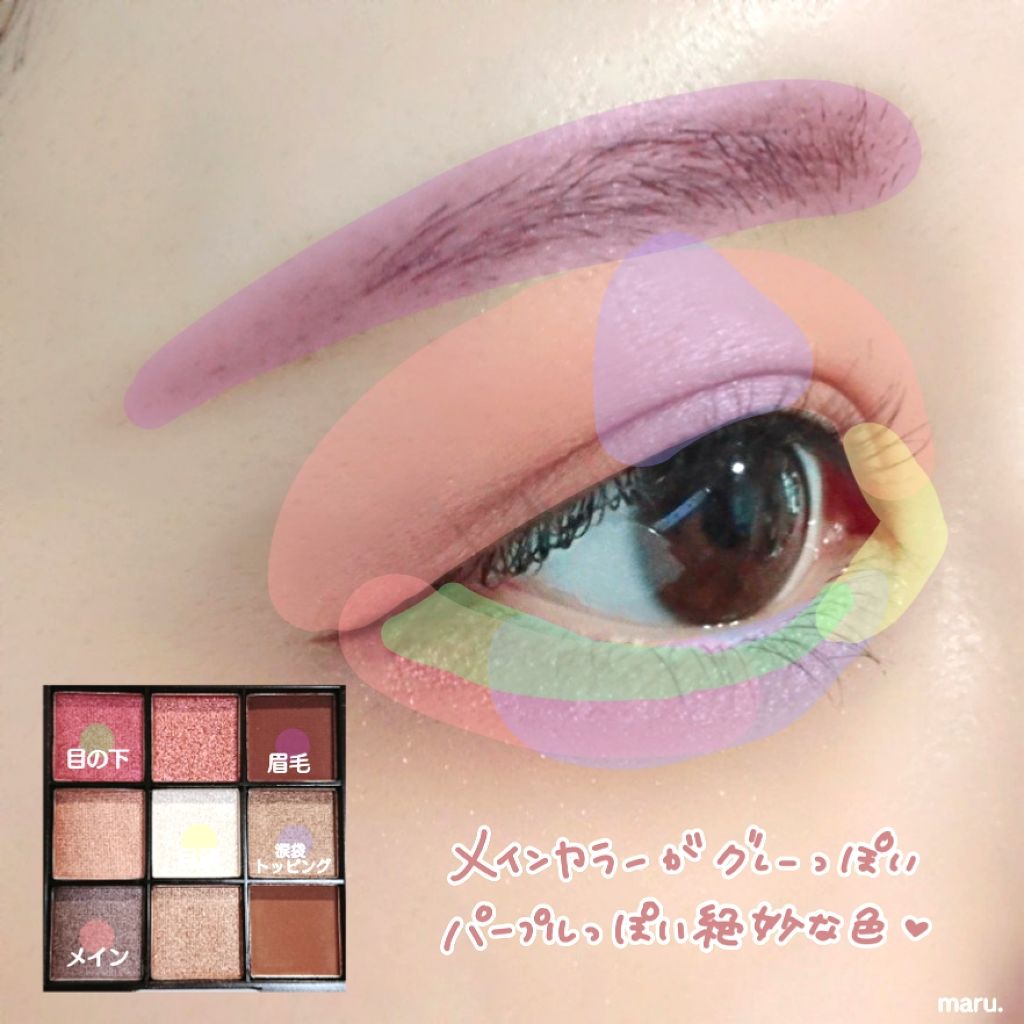 URGRAMでメイクシリーズ②おしゃれブラウン🐻💕スウォッチあり👌URGRAMブルーミングアイパレット02今回は前回に引き続き、ブラウンの部分を使ってメイクしてみました😌❤#まるメイク1.⑨を上まぶた全体に塗る。2.③を重ねて上まぶたに、下ま...