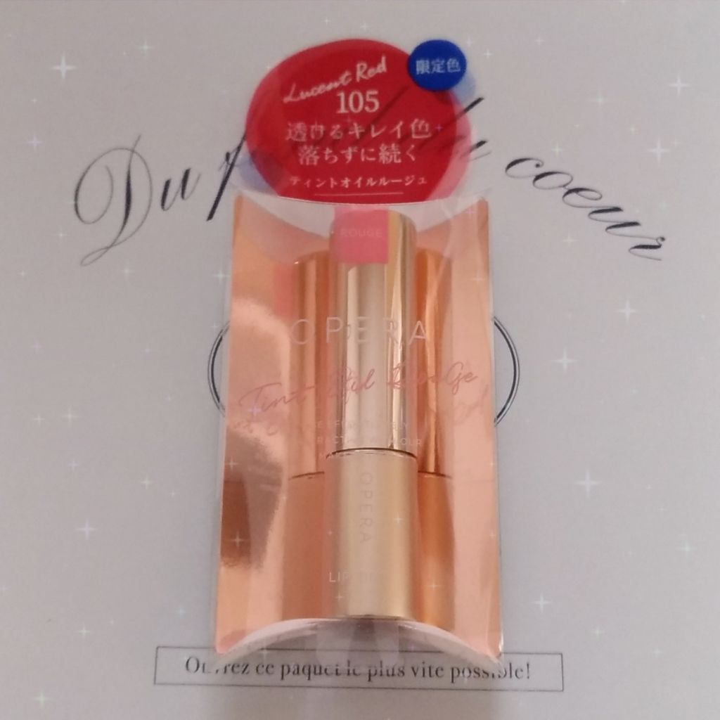 ラメ入りレッドリップ!ブルベ寄りかと思いましたが、塗ってみると、オレンジアイシャドウにも合いそうな……万能レッドリップ感♡オペラのティントは、もともと落ちにくくて、好きだけど♥ラメが控えめで、それもシーンを選ばない万能かな♥#リップティント#...