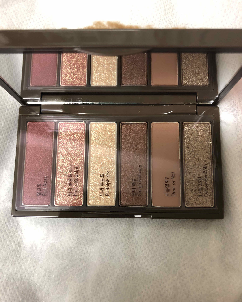 - 2019 Holiday Collection『ルドルフ カミングトゥータウン 』 願いをのせて、星空のようにキラキラ輝くまなざし ◆願いを叶える星のようにキラキラ輝く6色入りアイシャドウパレット ルドルフが駆け巡る夜空のように、キラキラと光り輝く目元に仕上げるミニサイズのアイシャドウパレット。 ワクワクする想いをまぶたにのせて、星のようにキラッと輝くまなざしに。 マット・シマー・グリッター、異なる質感の組み合わせで、理想のグラデーションが簡単に完成します。 思わず自慢したくなるキュートなパッケージで、いつでもルドルフと一緒にメイクを楽しめます。 ◆ルドルフのチャームポイント「赤いお鼻」をイメージ ルドルフのチャームポイント「赤いお鼻」をイメージしたデザインとカラーバリエーション。 うるっと女性らしい目元に仕上げるレッドブラウンカラーがしっとり艶やかに発色し、ルドルフのように愛されるキュートな目元が完成します。