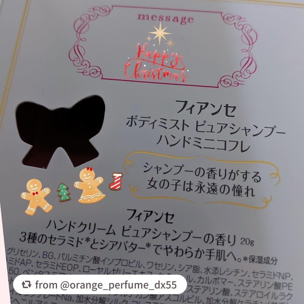 orange_perfume_dx55さん ご購入、投稿ありがとうございます! 数量限定のボディミスト ピュアシャンプーの香り ハンドミニコフレ毎年大人気です! このギフトボックス🎁実は仕掛けが!! orange_perfume_dx55さんの4枚目の画像にある、ギフト箱の天面のリボンは、ミシン目に沿って抜くと、 リボン🎀がピョコっと立って更に可愛くなりますので、 プレゼントする時に良ければ試してみてくださいね🎄