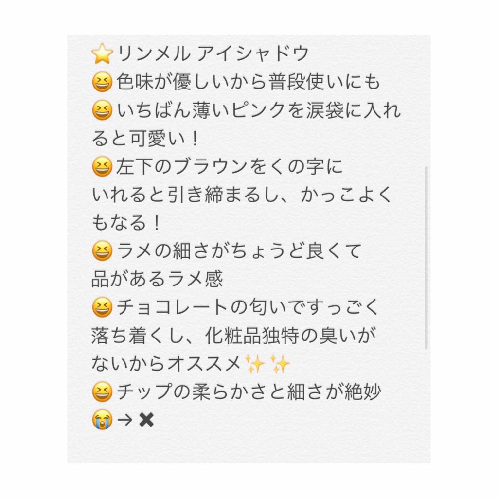 | チョコレートのいい匂いで、粒子も細かくて瞼にしっかり発色してくれる‼️ | 詳細を見る |