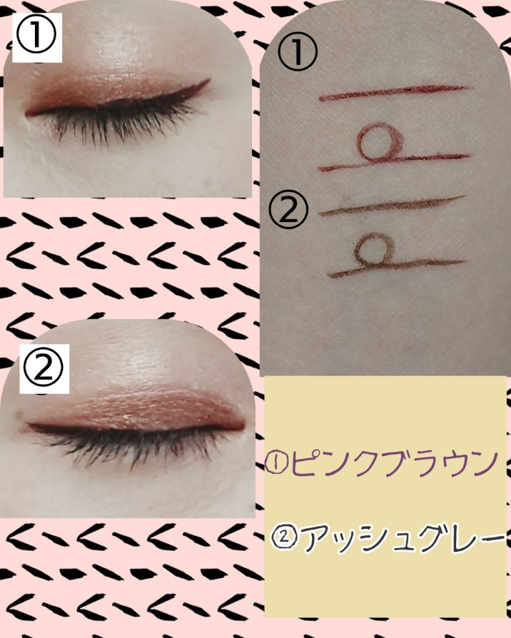 パーツリサイズシャドウのスウォッチ☆発売前から「目を下に大きく見せる 小顔リメイクアイシャドウ」のキャッチコピーが気になっていたので近所のドラックストアであったので購入しましたwピンク系のPK-1レトロピンクとブラウン系のBR-2ローズブラウ...