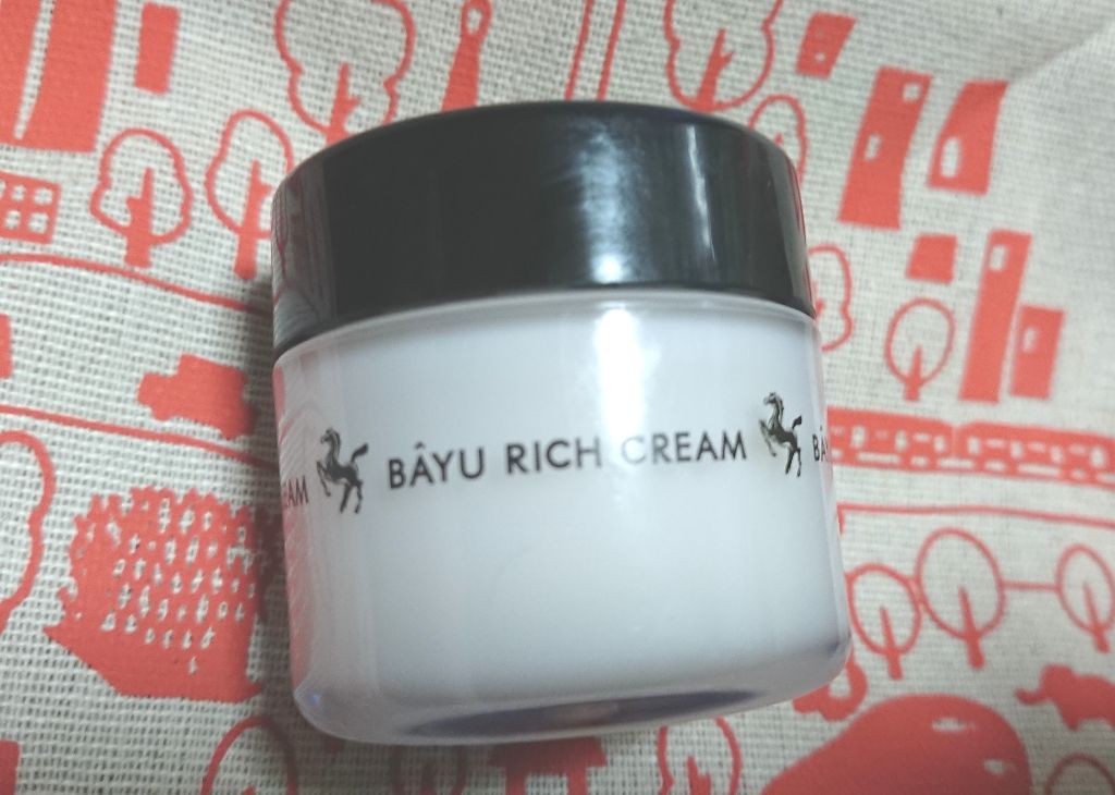 - 水・グリセリン・スクワラン・オクタン酸セチル・ステアリルアルコール・ステアリン酸グリセリル・BG・ワセリン・馬油・甘草エキス・コメ胚芽油・ミツロウ・ポリソルベート60・カルボマー・トリセテス―5リン酸・ジメチコン・水酸化Na・酢酸トコフェロール・BHT・メチルパラベン・プロピルパラベン・香料