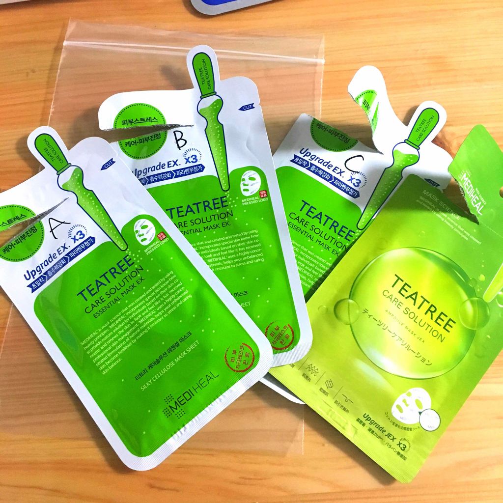 韓国パックの火付け役的存在のMEDIHEAL。色々試したくて5種類使ってみたけど、やっぱり青と緑が好きでした💭 N.M.FアクアアンプルマスクJEX ティーツリーケアソリューション アンプルマスクJEX