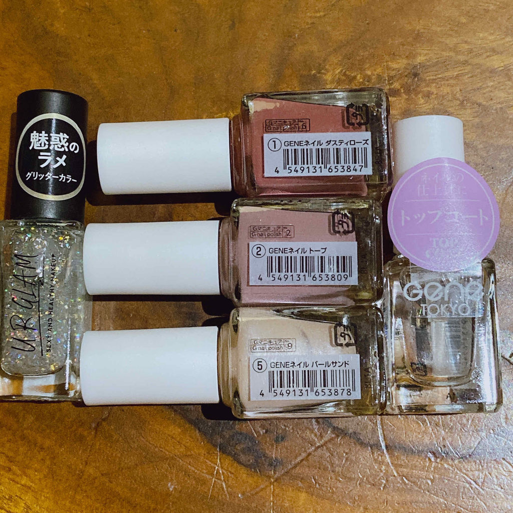 🍁秋っぽネイル🍁↓使用したもの(ALLダイソー商品)↓〇1番、GENEネイル⑤パールサンド〇2番、GENEネイル②トープ〇3番、GENEネイル①ダスティローズ〇4番、URGLAMCL1〇5番、キティネイル19トップコート〇マスキングテープ〇ス...