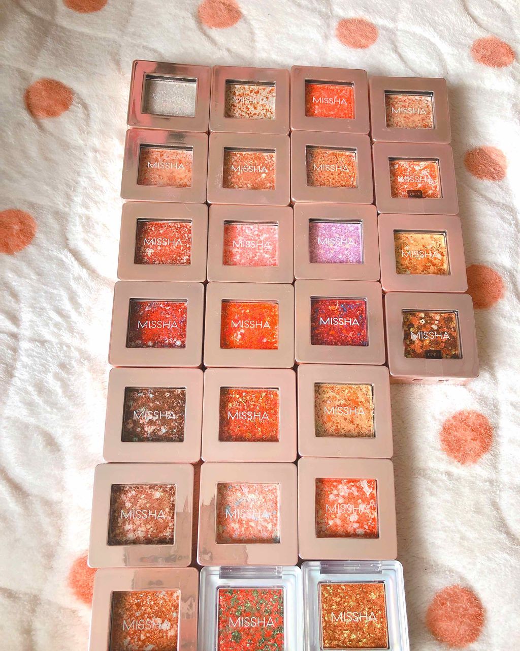 MISSHAグリッタープリズムシャドウGPK02キラッキラ、ラメアイシャドウです〜これは単色で目元をパッと華やかな印象にさせてくれるので気に入ってます〜これはピンク〜サッとひと塗りしただけでも、いい感じになるから良いです〜...