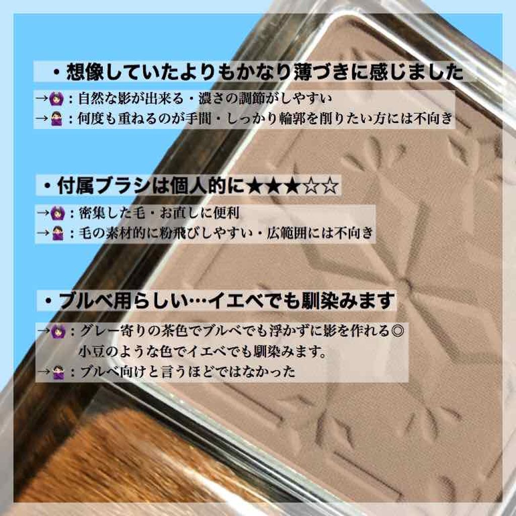 | ハイライト・シェーディングランキング第32位 | ややしっとりした質感とサラッとした粉質 発色は控えめだが薄づきでも陰影がしっかりある 仕上がり | 詳細を見る | |